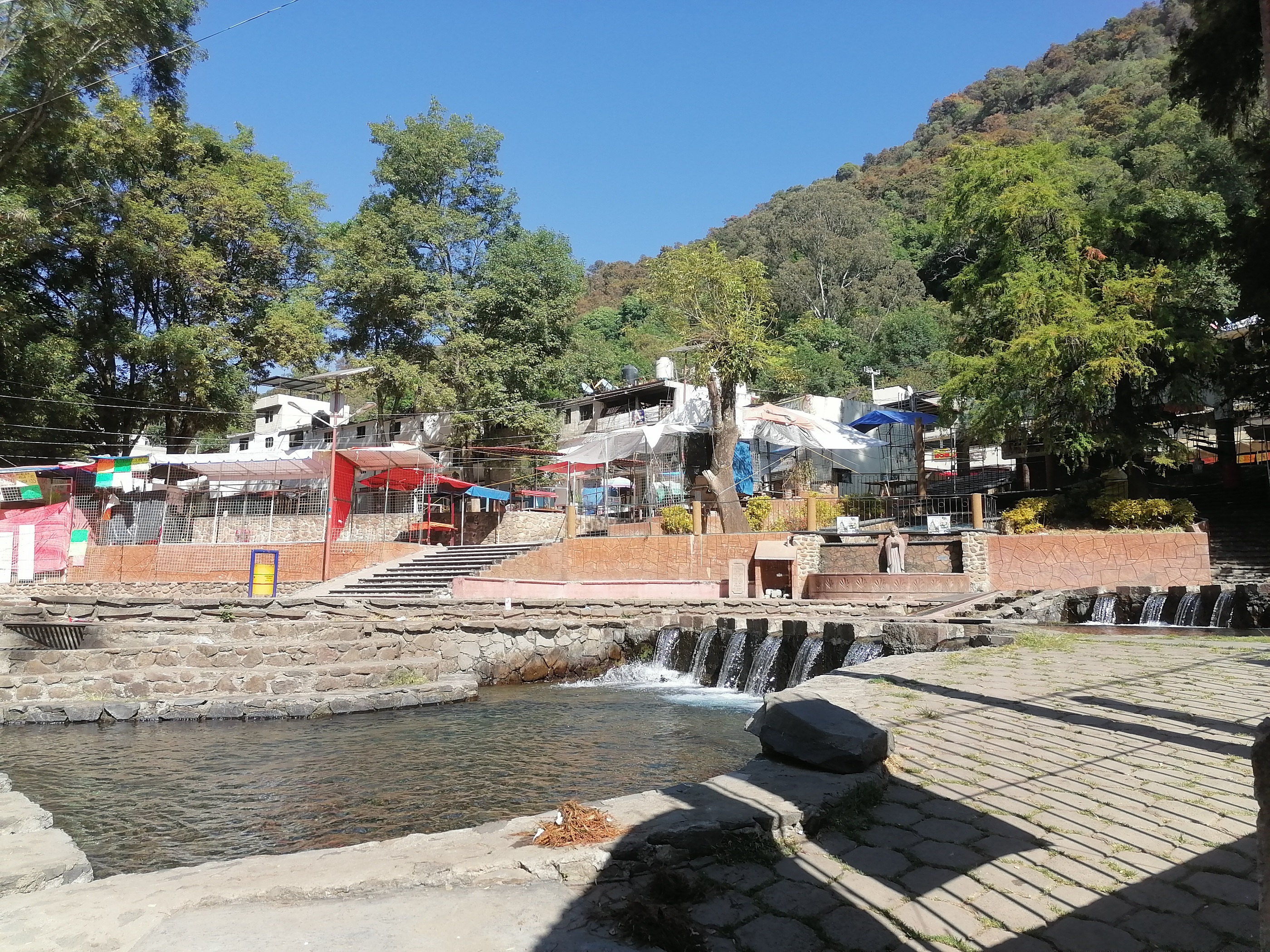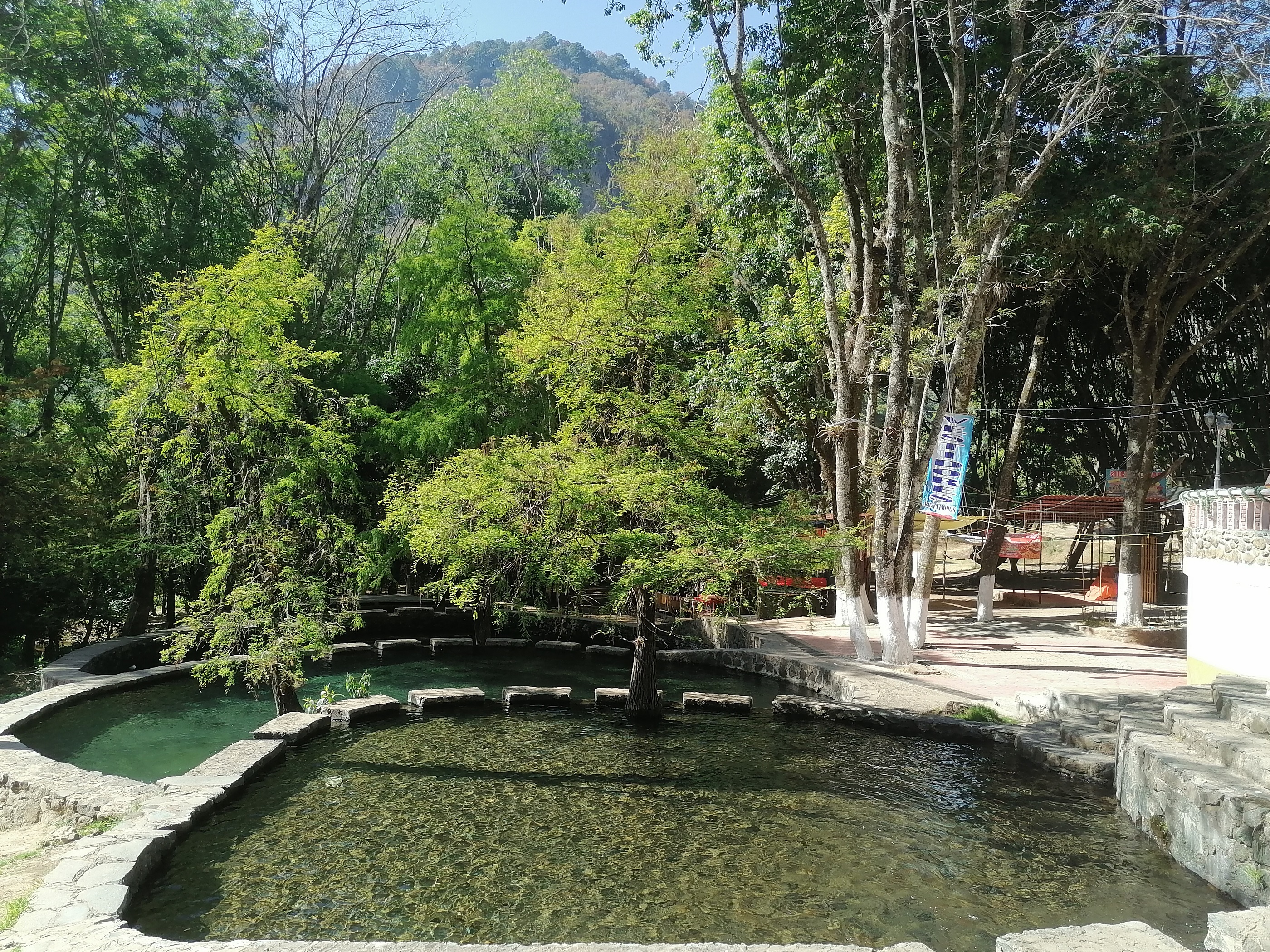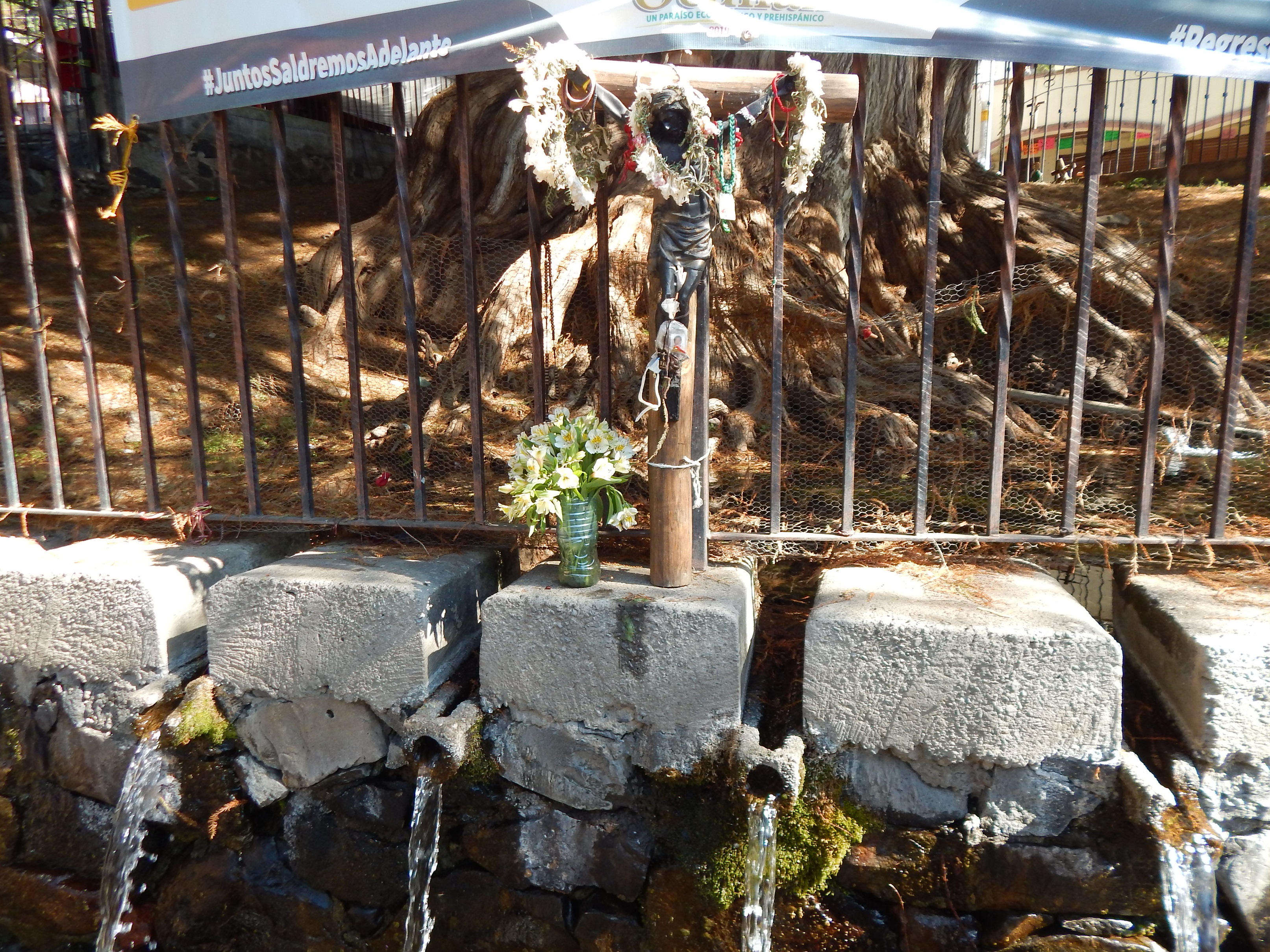 Se inició su construcción en el año 1997, las aguas que los alimentan nacen de las raices del Árbol Sagrado.