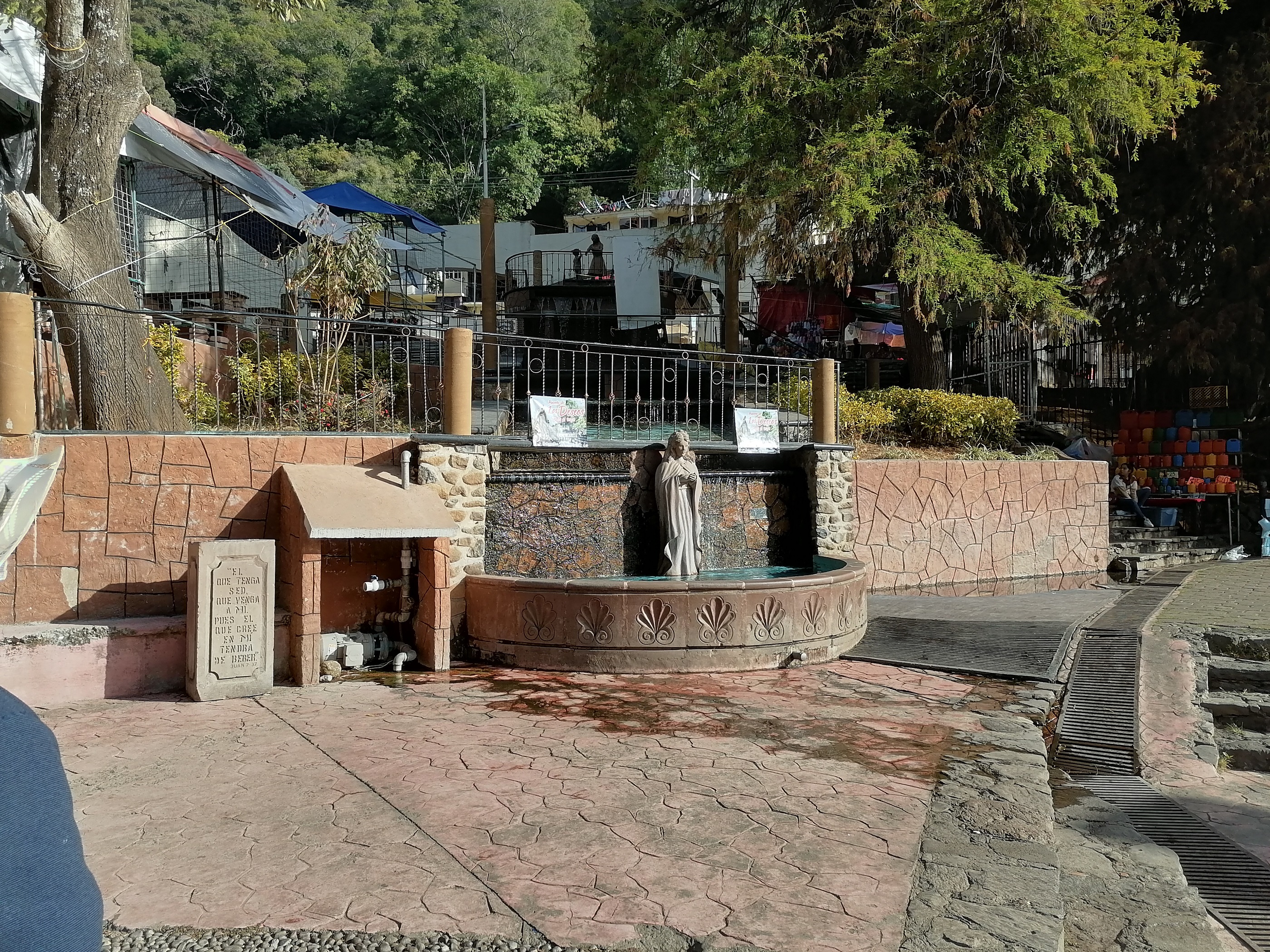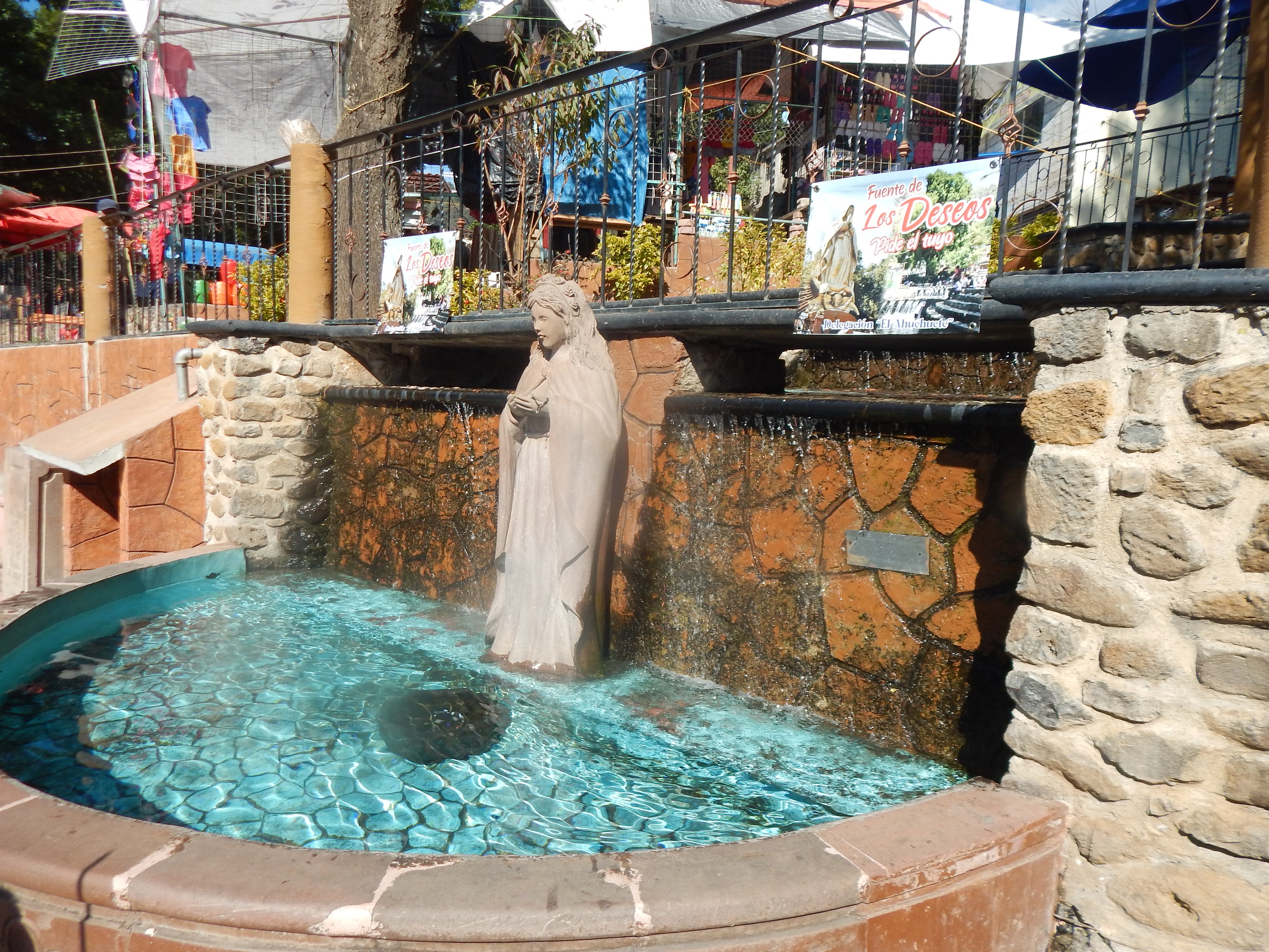 Al considerarse milagrosa el agua del manantial que brota del Árbol Sagrado, se tomó la decisión de construir una fuente para que los peregrinos Al plantarse frente a la fuente, los peregrinos realizan plegarias y piden deseos, ya que se tiene la creencia que al ser milagrosa el agua, en ella habitan deidades las cuales lo pueden conceder.